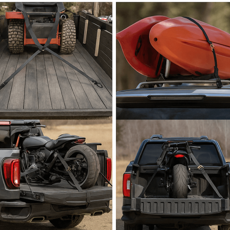 Absolutely. The straps are designed to withstand outdoor adventures and tough conditions. The polyester webbing resists moisture, UV damage, and mildew, ensuring long-lasting reliability even in wet or sunny environments. The vinyl-coated steel hooks prevent rust and corrosion, making them ideal for boats, jet skis, trailers, or camping gear. Whether you’re heading to the lake, the mountains, or across the country, these straps perform just as well in rugged outdoor conditions as they do in your garage. They’re the perfect tie-down solution for explorers who demand performance, durability, and peace of mind wherever they go.